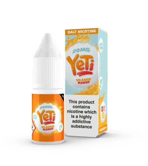 Orange Mango e-liquid by Yeti Salts is an orange and mango based e-juice, topped off with a hint of ice, neatly packaged in a childproofed 10ml bottle.